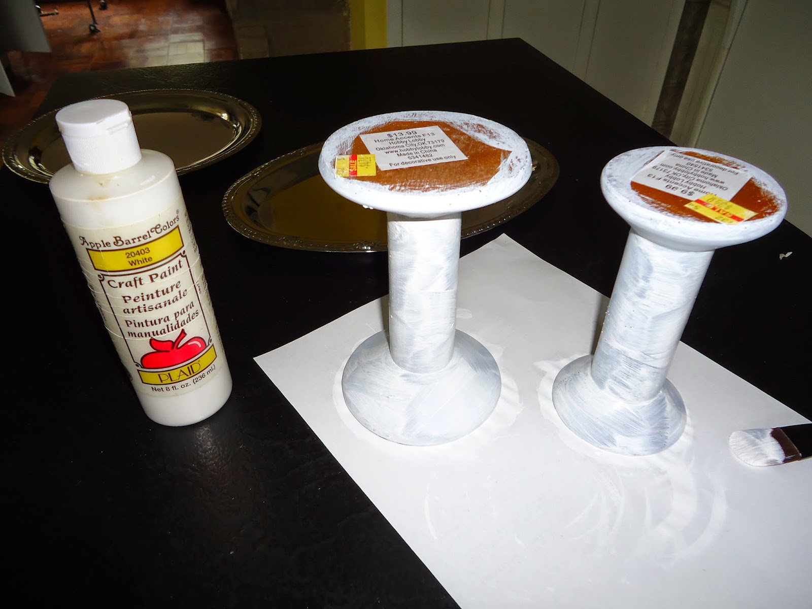 So yesterday I was browsing Hobby Lobby for a different project and I found myself over in the clearance section when low and behold I found the perfect "stand" pieces for my cake stand. They were super heavy and well made which I thought would be perfect to securely hold heavy perfume bottles.